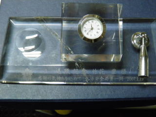 | ガラス記念品 日本最大級のイベント会場の社長さん個人のガラス時計&ペンスタンド |