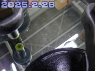 未施工のように見えますが衝撃点にドリルの穴が空けられています。黒い筋が未接着で下手なリペアです。